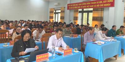 Phát biểu kết luận hội nghị, đồng chí Nguyễn Thị Hồng – Bí thư Đảng ủy xã đề nghị toàn Đảng bộ tiếp tục phát huy truyền thống đoàn kết, thống nhất; bám sát sự chỉ đạo của cấp trên để tháo gỡ khó khăn. Đồng thời, cần huy động sự đồng thuận của Nhân dân để thực hiện hiệu quả mô hình chính quyền địa phương hai cấp và cuộc vận động thay đổi nếp nghĩ, cách làm trong đồng bào dân tộc thiểu số để thoát nghèo bền vững.