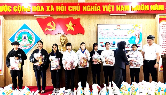 ảnh 2: Mẹ đỡ đầu trao quà tết cho các em học sinh mồ côi