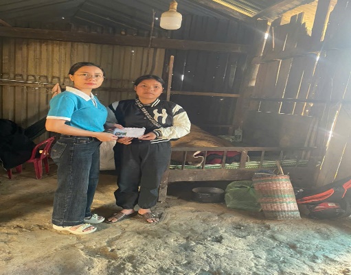 ảnh: Đ.c Hồ Thị Phay – Phó chủ tịch Ủy ban MTTQ Việt Nam xã thăm động viên gia đình ông Hồ Văn Nhúc
