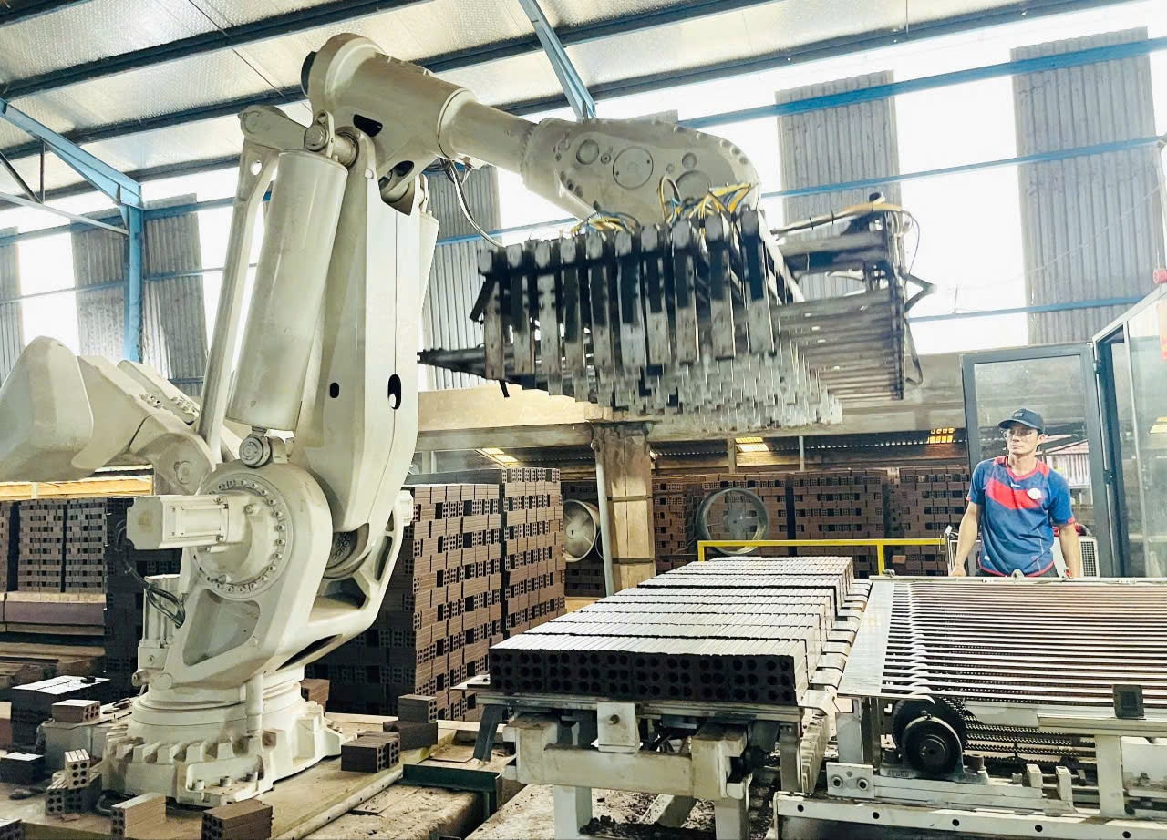 Các doanh nghiệp ở xã Thu Bồn ứng dụng công nghệ hiện đại trong sản xuất gạch. Ảnh: P.T