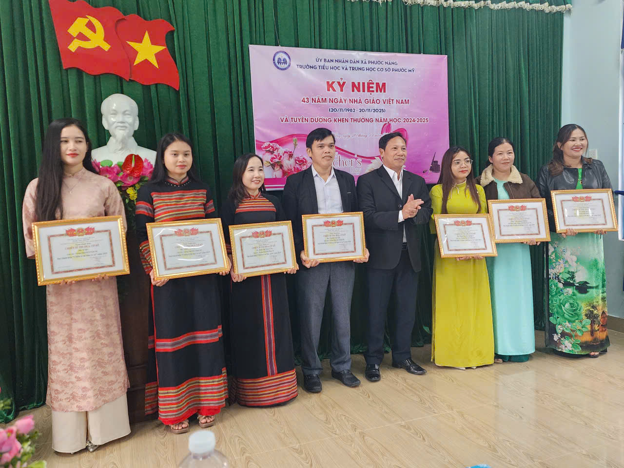 Hội nghị đã tuyên dương, khen thưởng những tập thể, cá nhân có thành tích xuất sắc trong năm học 2024 - 2025, nhằm động viên, khích lệ tinh thần, trách nhiệm, lòng yêu nghề của đội ngũ cán bộ, giáo viên, nhân viên; tạo khí thế thi đua sôi nổi, phấn khởi, gắn bó, đoàn kết trong ngành giáo dục trên địa bàn xã. Trong đó: 04 cá nhân nhận Bằng khen của Chủ tịch UBND thành phố Đà Nẵng đã có thành tích xuất sắc nhiệm vụ năm học 2023-2024 và 2024-2025; 16 cá nhân nhận giấy khen của Chủ tịch UBND xã; 45 cá nhân được công nhận danh hiệu chiến sỹ thi đua cơ sở và 166 cá nhân đạt danh hiệu lao động tiên tiến.