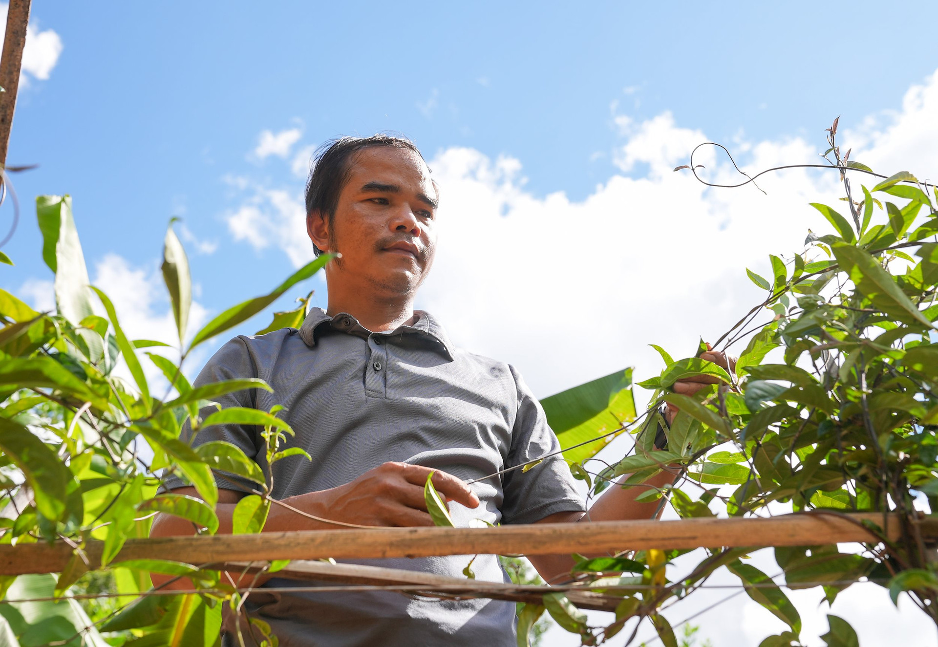 Anh Bhnước Ngan trồng ba kích tím dưới tán rừng. Ảnh: HỒ QUÂN
